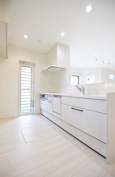 シンプルながらも、広々としたキッチン。光が入り込むLDKに隣接しているので、キッチンも明るくなりました。